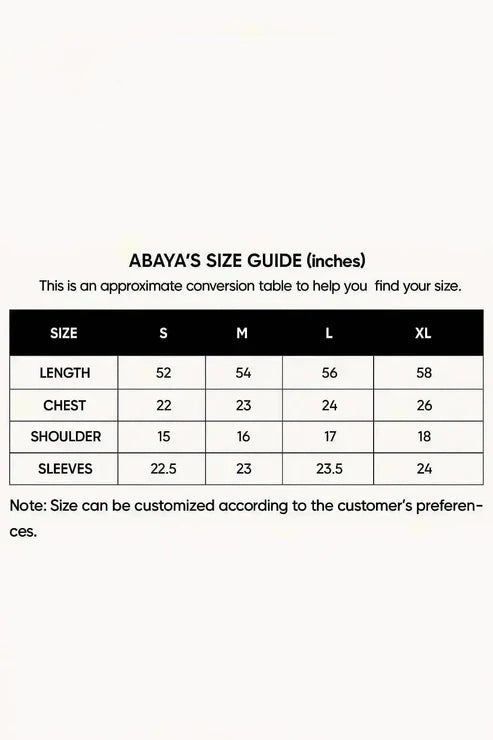 The Noir Elegance abaya features delicate skin-toned bows that add just the right touch of charm and contrast to a classic silhouette. Whether you're dressing up for a special occasion or keeping it chic on a regular day, this abaya blends modesty with modern detail.