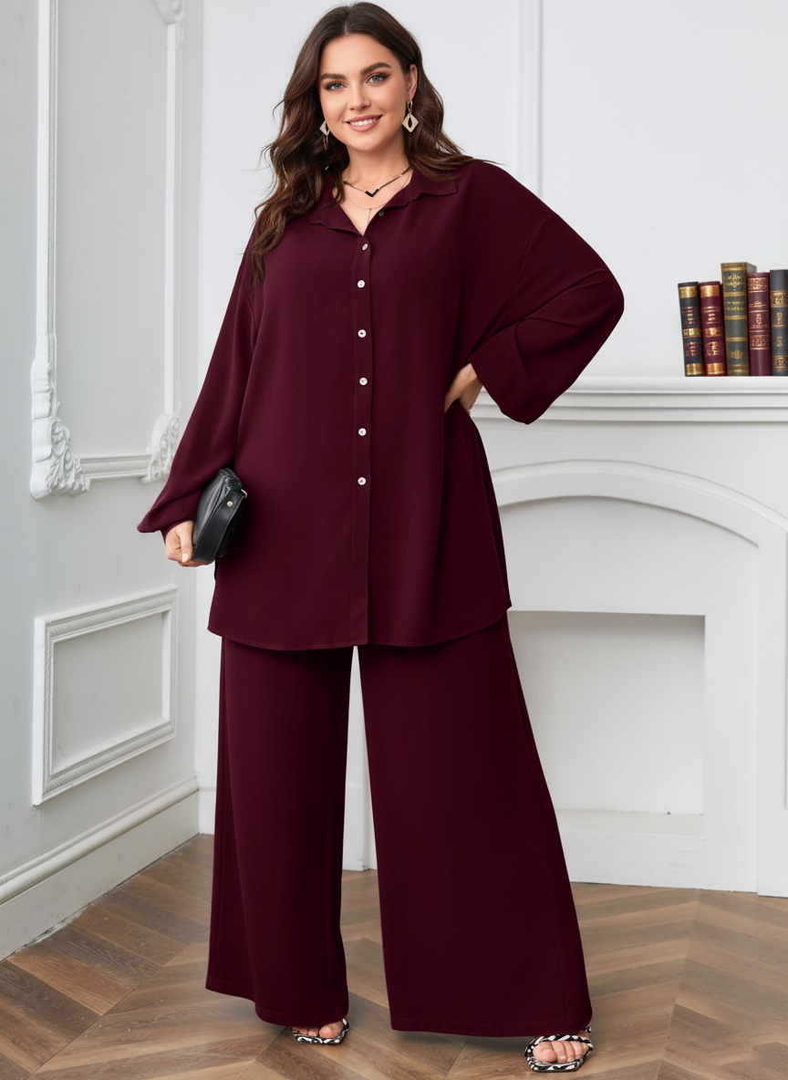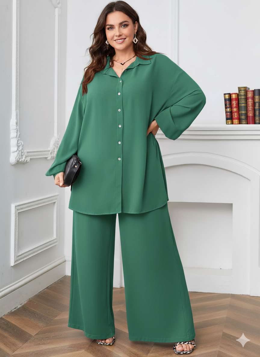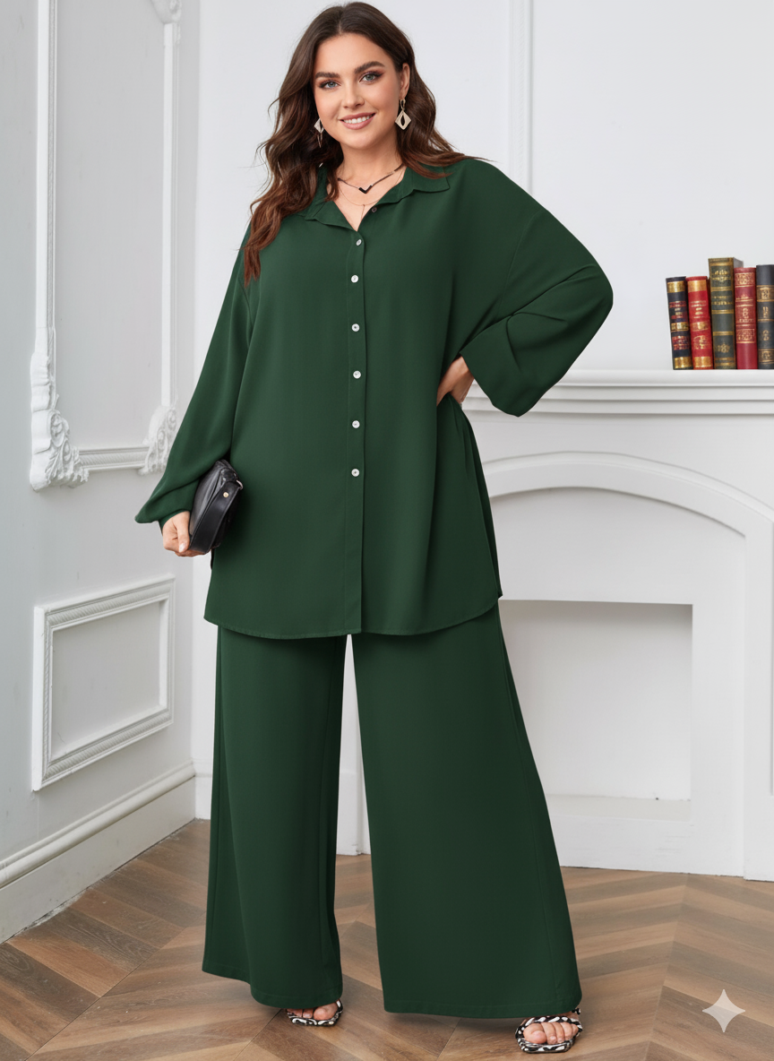 - ✅ 2-Piece Ready-to-Wear Set – Long shirt + wide trousers