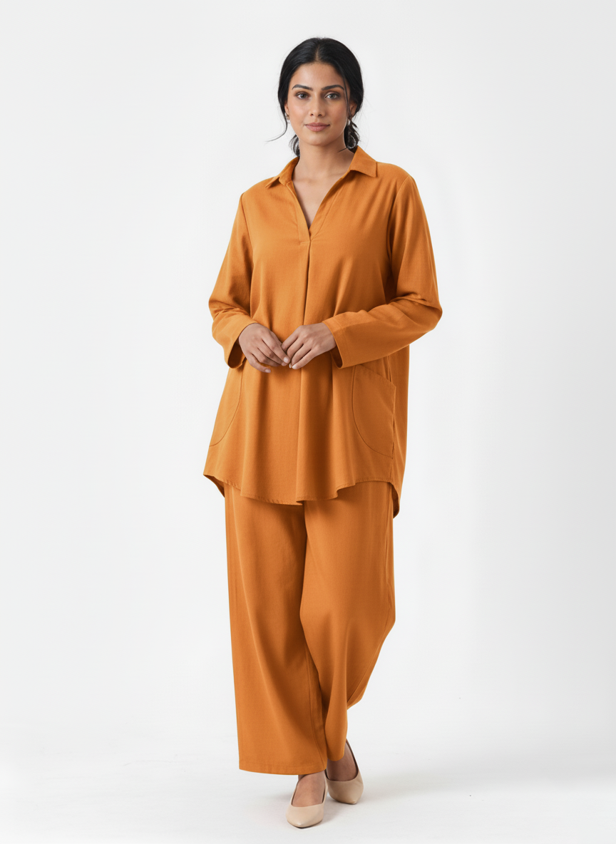 • 2-Piece Ready-to-Wear Set – Long shirt + wide trousers
