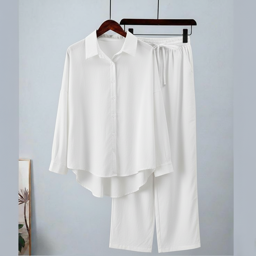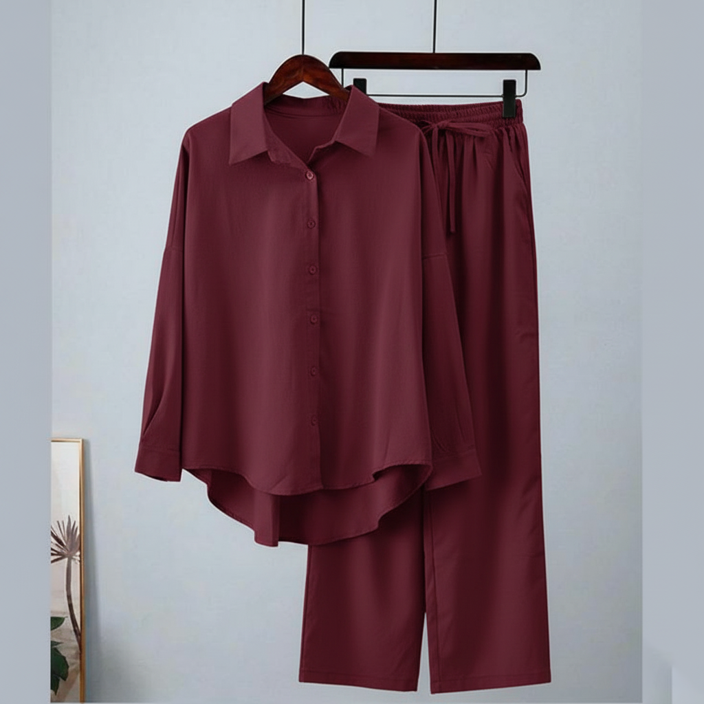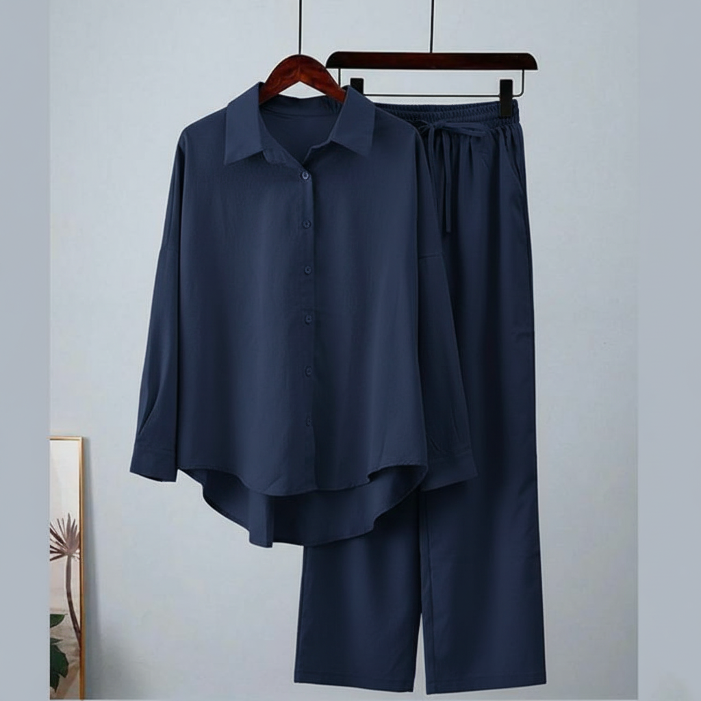 - ✅ 2-Piece Ready-to-Wear Set – Long shirt + wide trousers