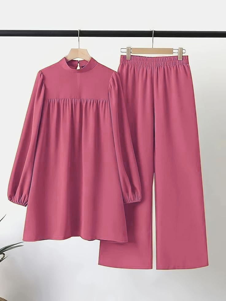 - ✅ 2-Piece Ready-to-Wear Set – Long shirt + wide trousers